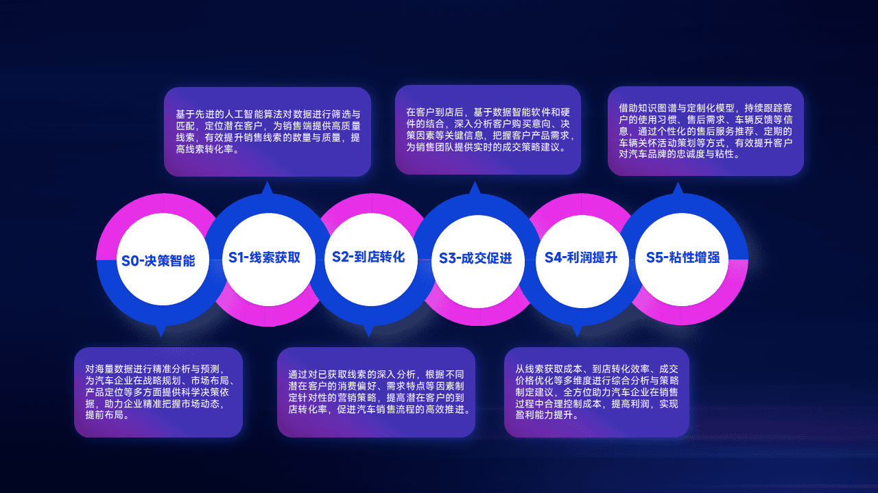 通过拓宽潜在客户来源、、、优化线索分配并提高到店转化率,,,,以增强销售效率。。。同时,,利用线索数据不断优化分析模型,,,有效提升转化率,,,,扩大营销影响力。。